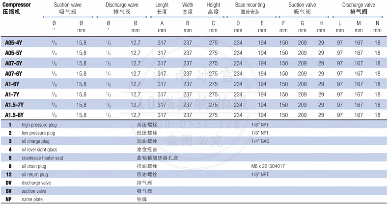 (7)包含截止閥、冷凍油和橡膠減震墊的凈重
